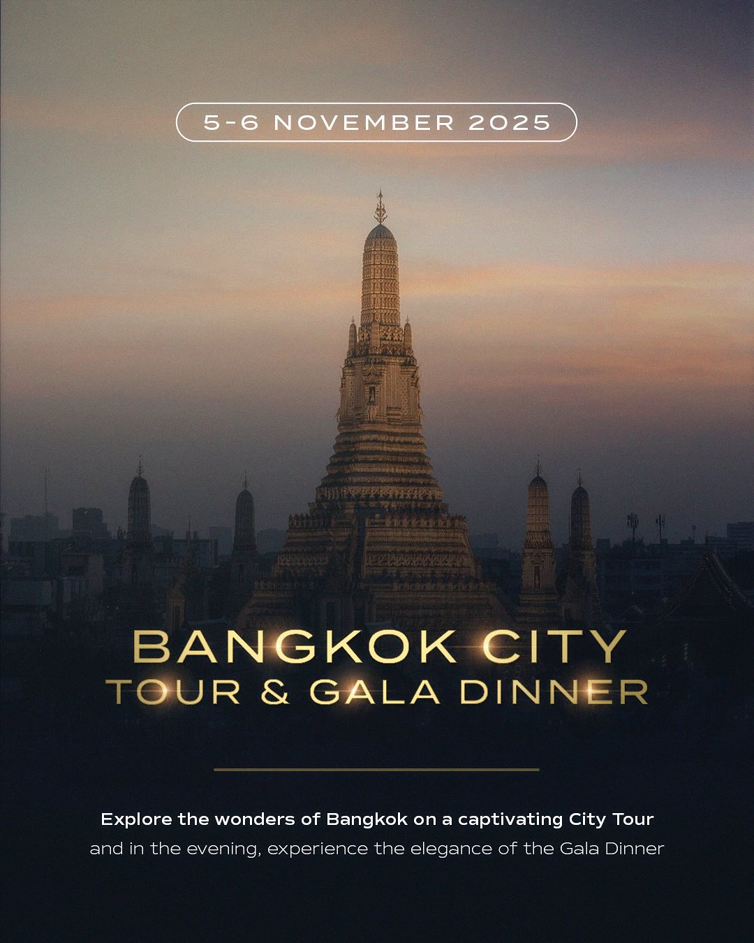 📍 November 5-6 – Bangkok City Tour & Gala Dinner: Exploring Thailand’s vibrant capital before an elegant evening of dining and cultural exchange.